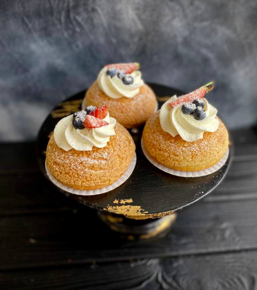 Заварное пирожное с хрустящей корочкой и нежным кремом.